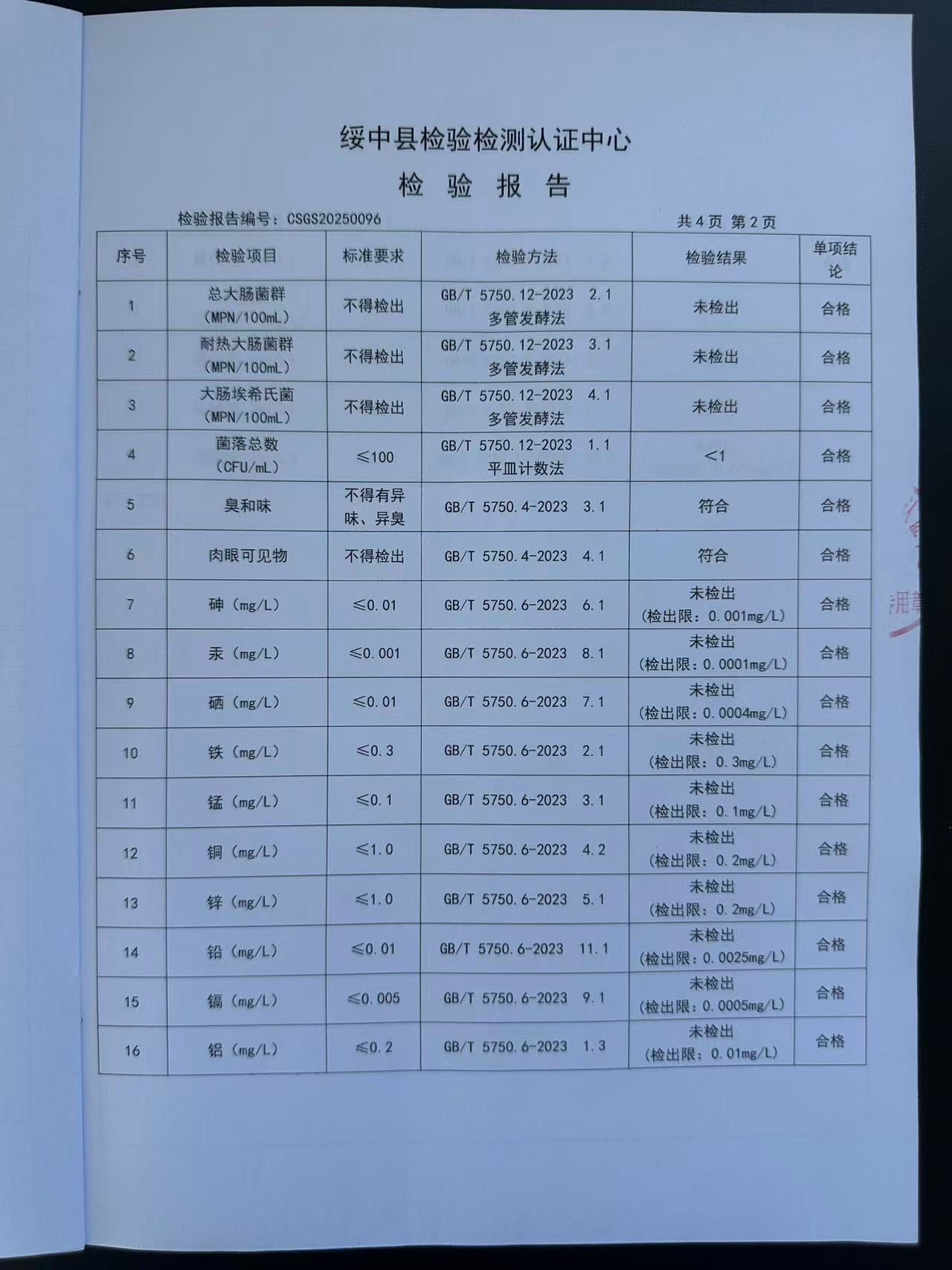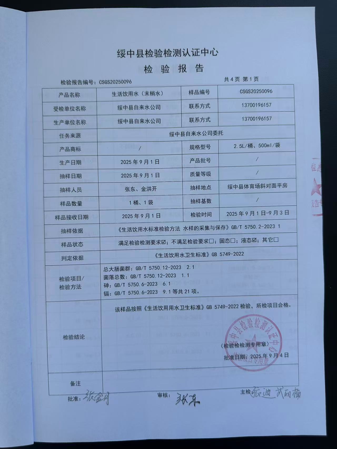 2025年9月04日水質(zhì)報(bào)告