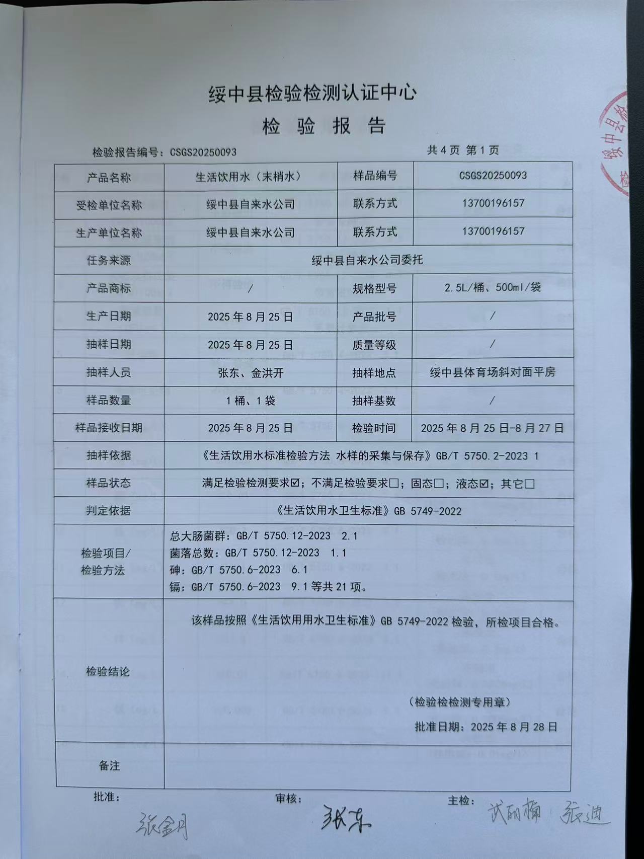 2025年8月28日水質(zhì)報(bào)告