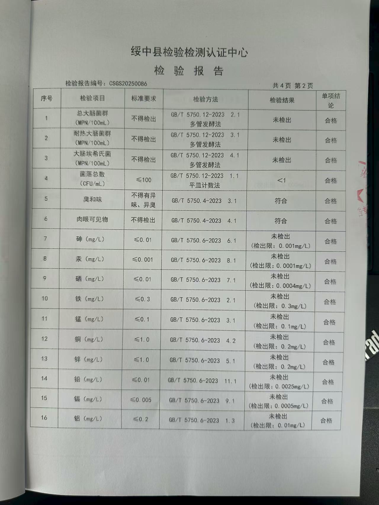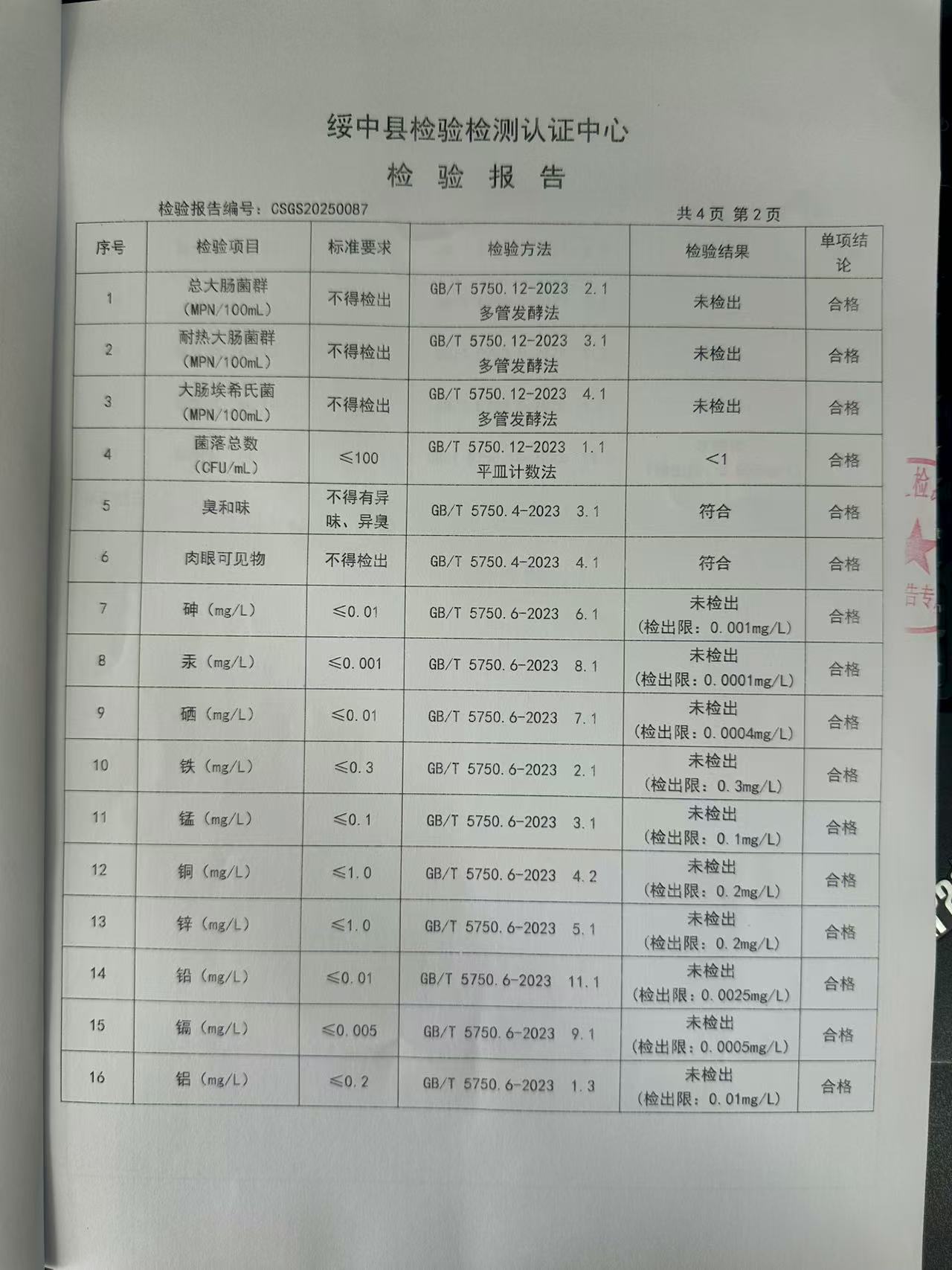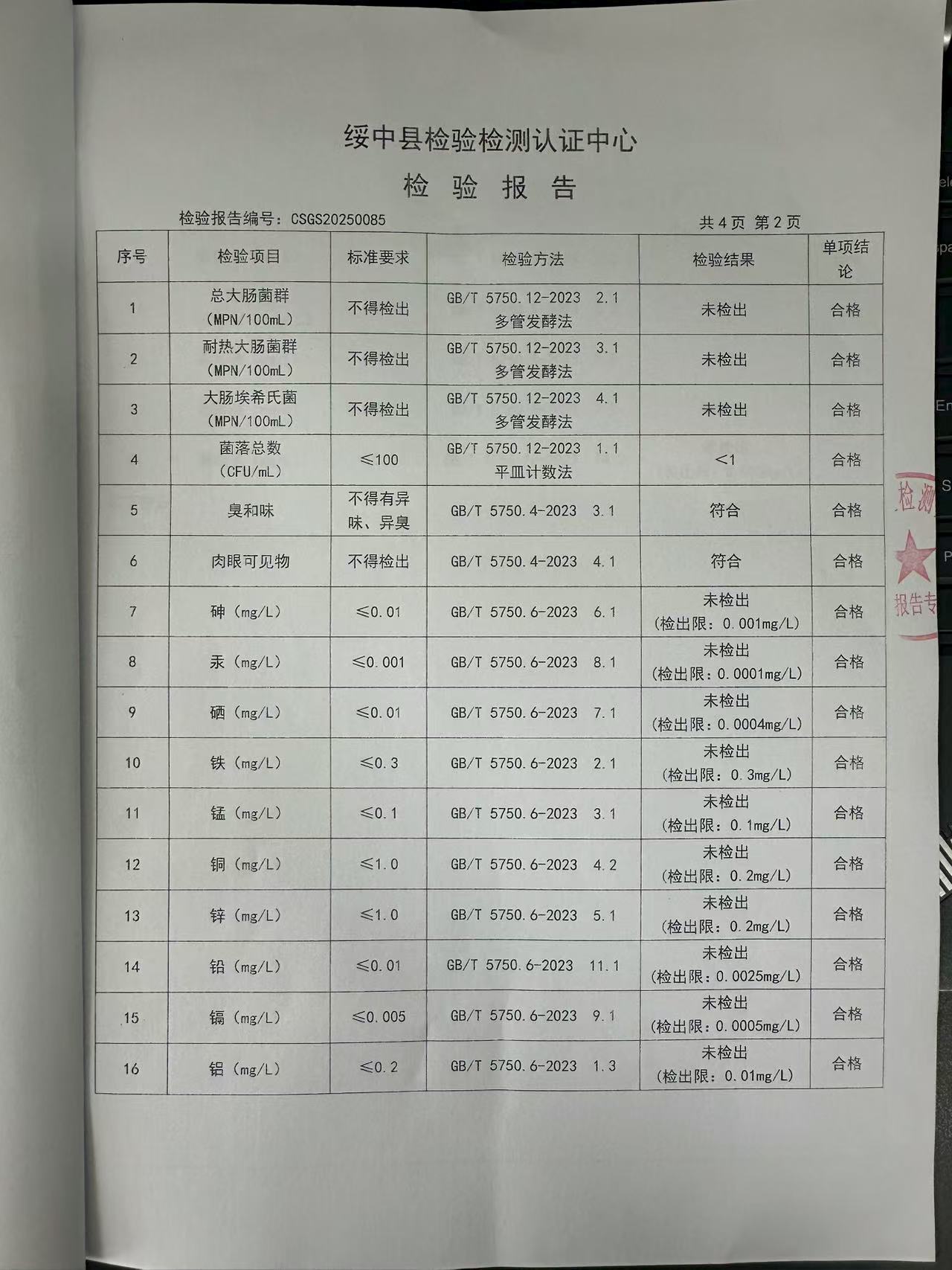 2025年8月7日水質(zhì)報(bào)告